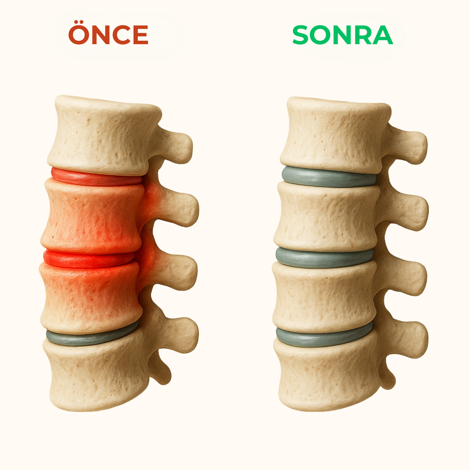 Cihaz, omurganızı 3–5 cm yukarı kaldırarak omurları doğru hizaya getirir. Bu sayede sinirler üzerindeki baskı azalır, diskler rahatlar ve beliniz doğal sağlığına kavuşmaya başlar. Düzenli kullanımda duruşunuz düzelir, hareket özgürlüğünüz geri gelir.